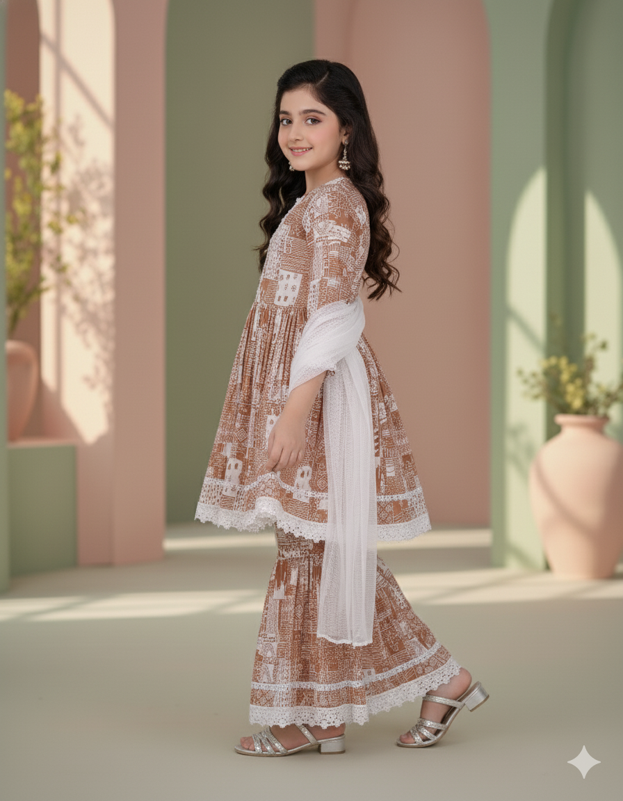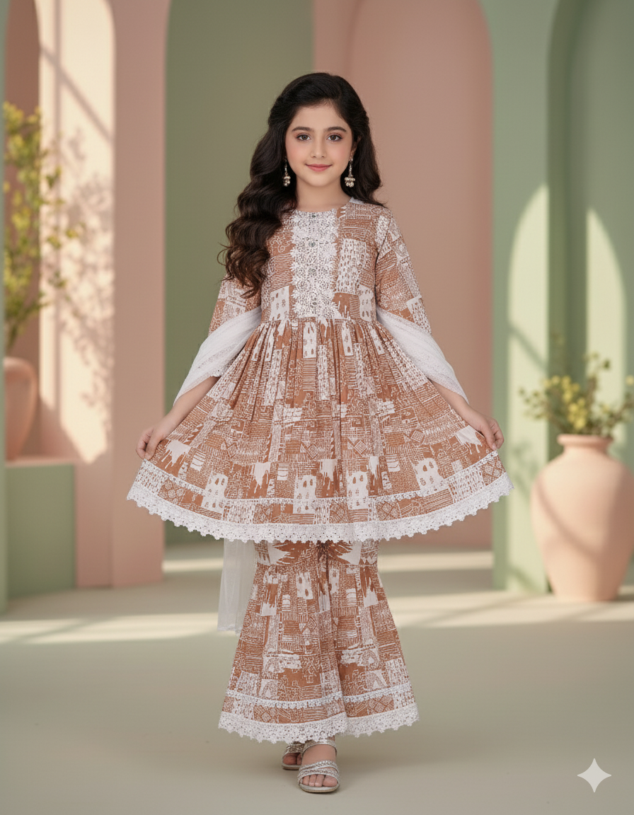 Be the first to review “Graceful Lace Kurti & Sharara Set for Girls”