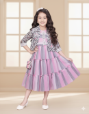 Elegant lavender and pink striped frock with a stylish printed jacket — perfect for parties, outings, and festive celebrations! 💕🎀